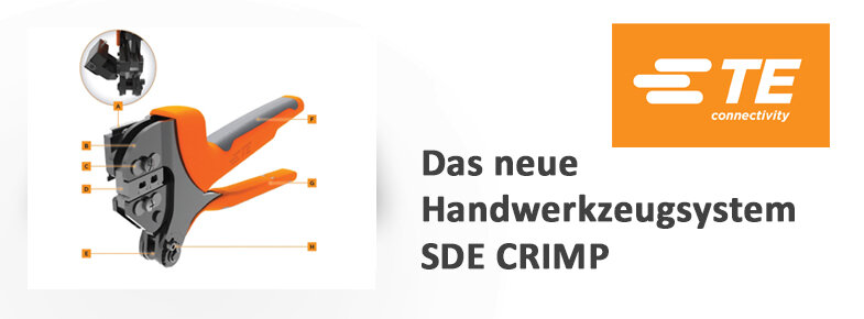Das neue innovative Handwerkzeugsystem SDE CRIMP von TE Connectivity besticht durch ein noch robusteres Design und die modulare Matrizenplattform. Die Werkzeuge werden u.a. in den Bereichen Industrie, Kraftfahrzeuge, industrieller und kommerzieller Transport, Haushaltsgeräte oder Energie verwendet.